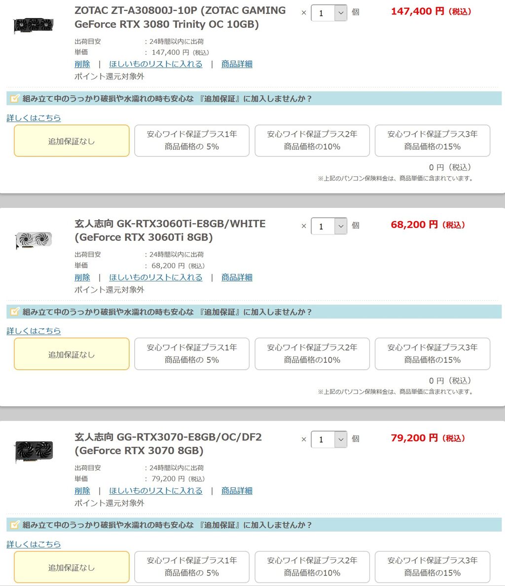 3060tiのBTO買ってグラボだけ抜いて他売ろうとしてる奴いるくらいやしBTOなら3060は勿体ないわ