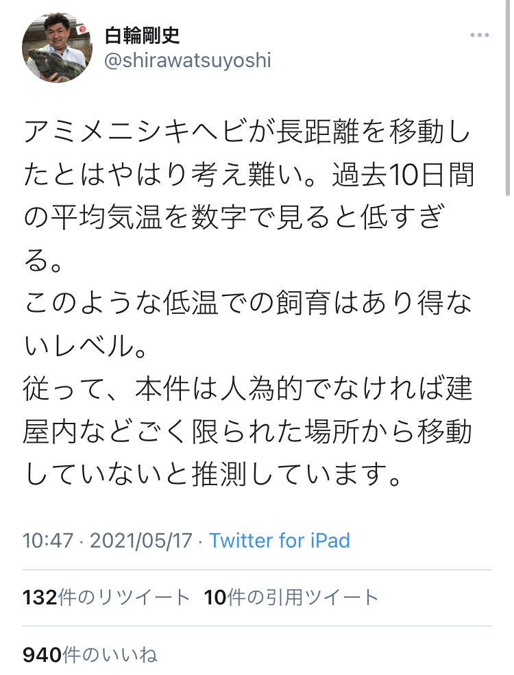 飼うときに申請してるから見つかったヘビの種類と地域から飼い主の絞り込みが始まる