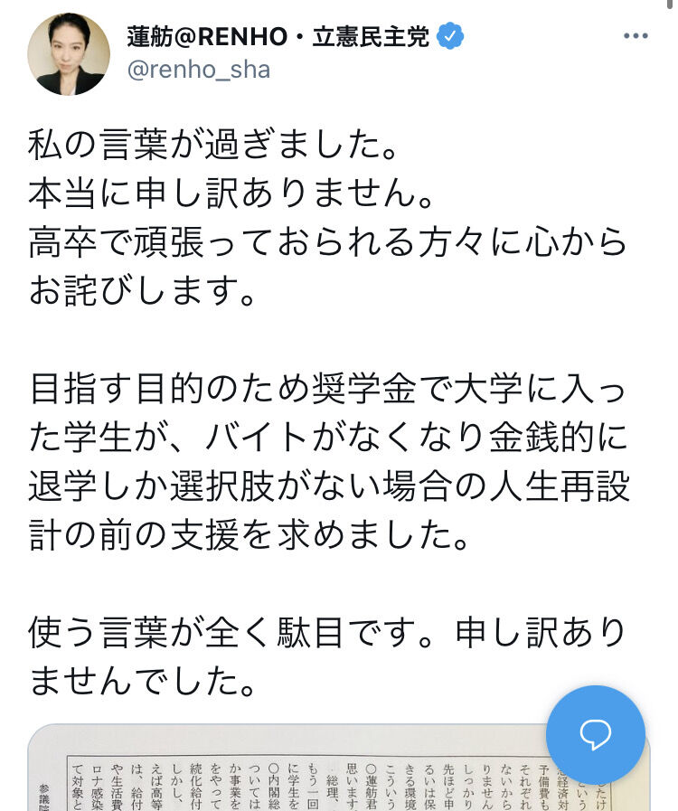 当の蓮舫氏は公の場で釈明しなかった上、本人ではなく党が謝罪することに。ひっそりと投稿は削除され、与党からは当然のごとく非難の声が上がり、さらには身内からも……。