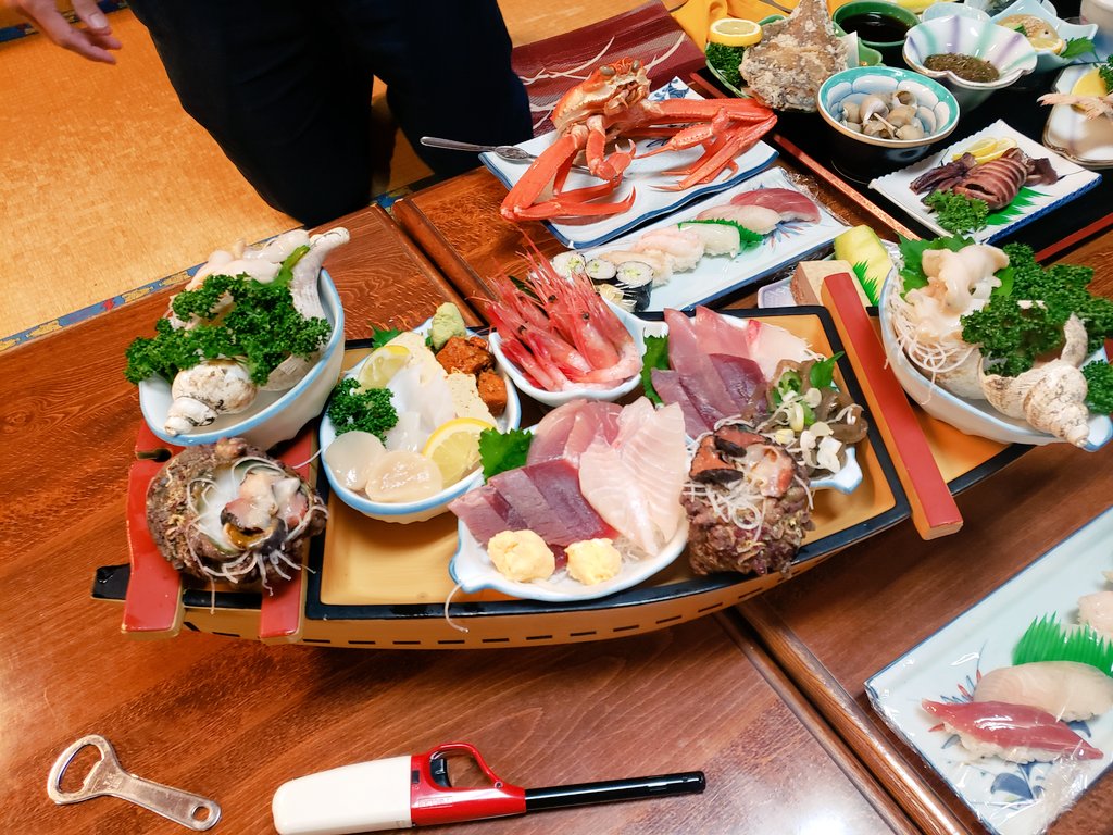 佐渡ヶ島来たら必ず泊まりたかった長浜荘さん、噂に違わぬ食べきれないくらいの魚料理の数々…!!