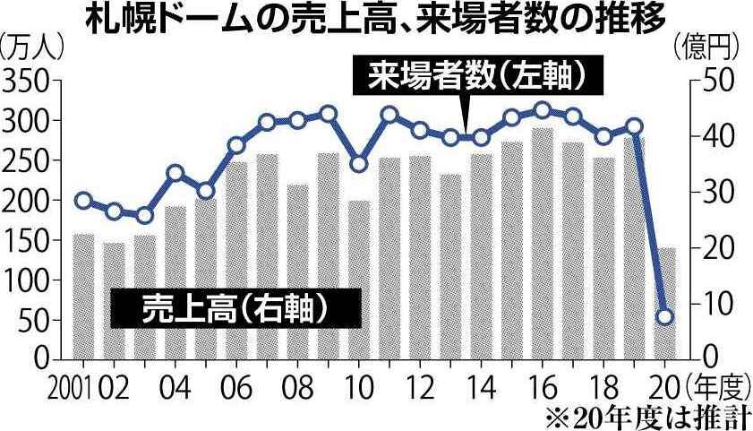札幌ドームの売上高、来場者数の推移