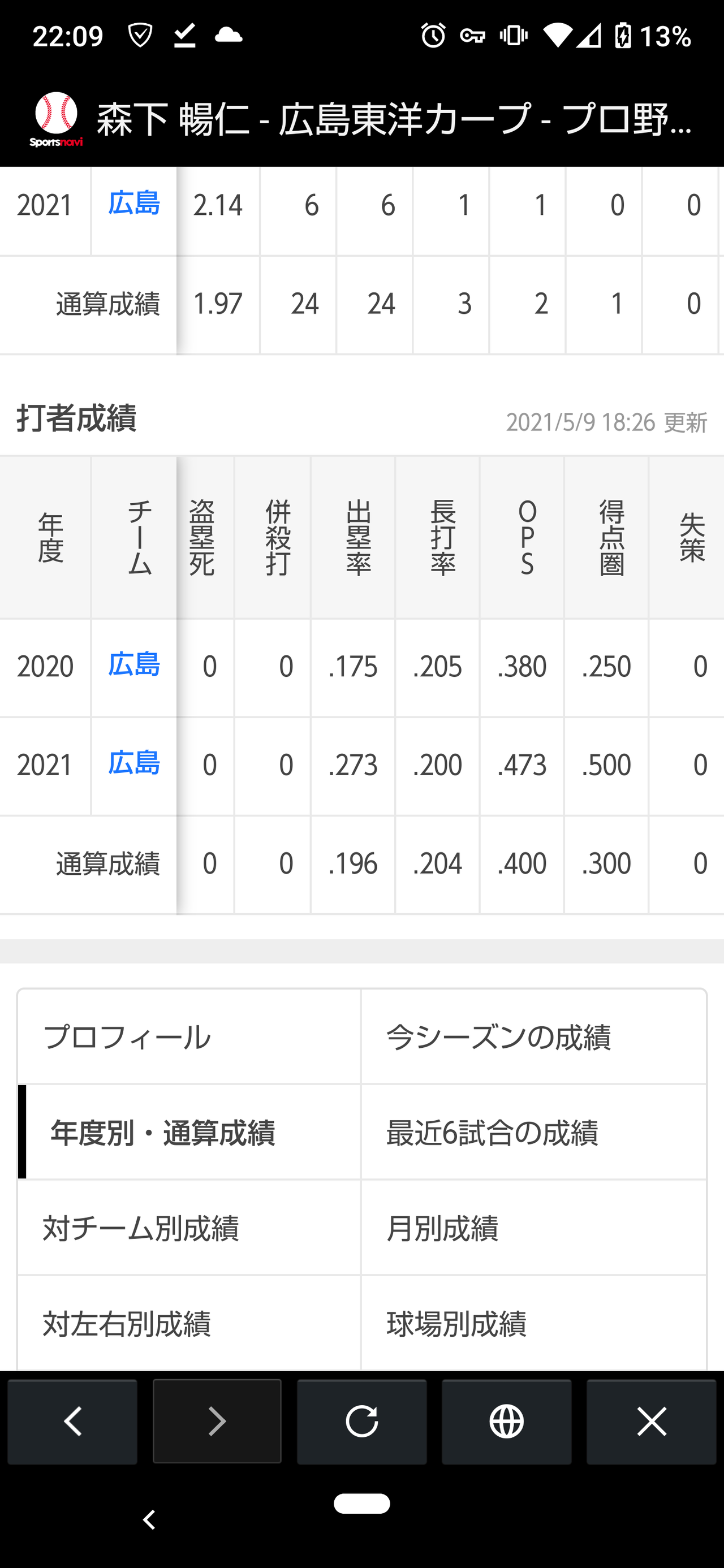 ちなみに森下の対田口成績.000(5-0)