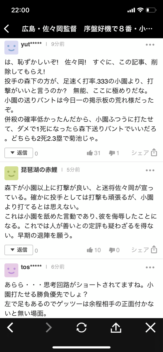 小園がバントして森下に代打ならまだ分かるわ