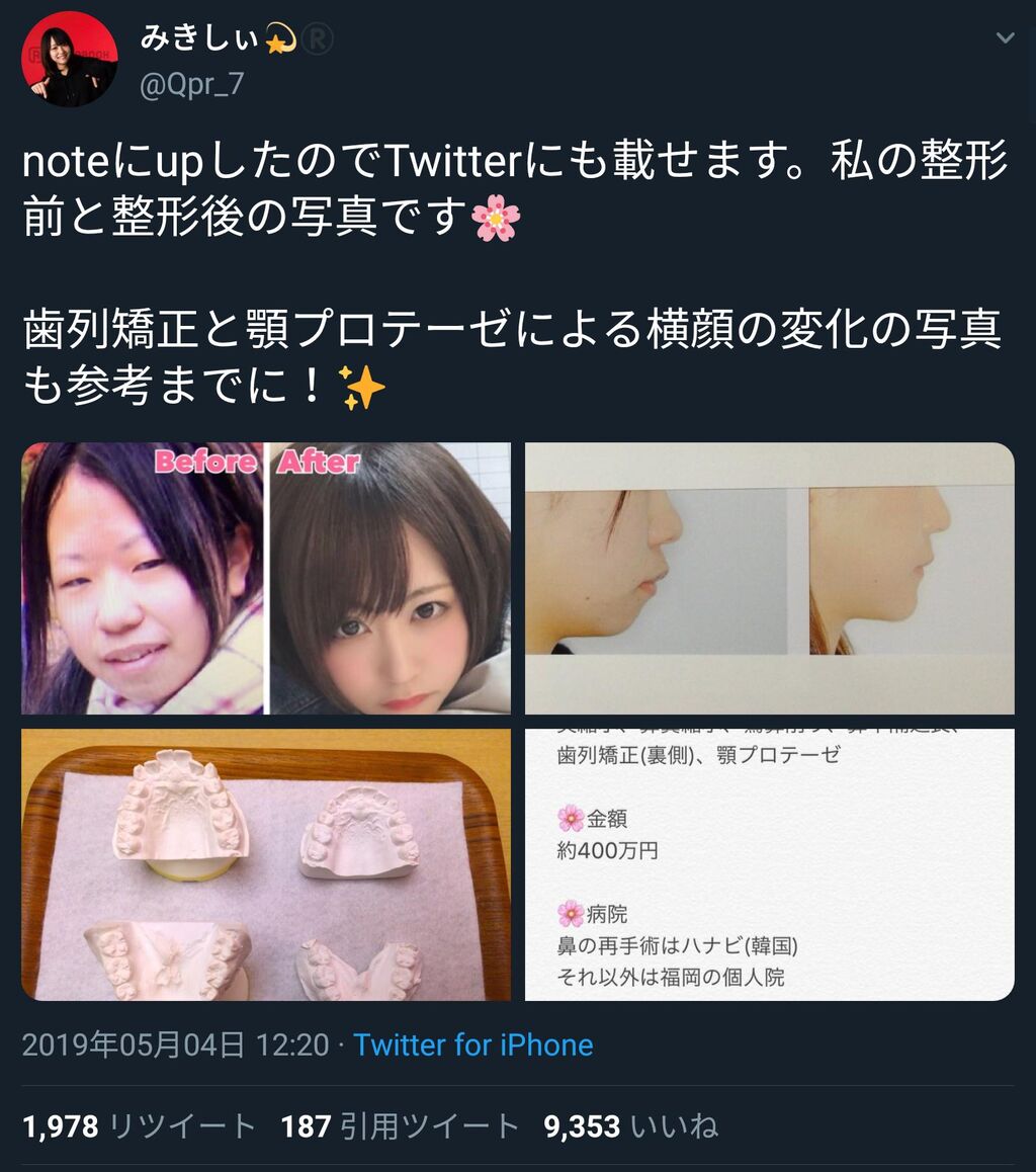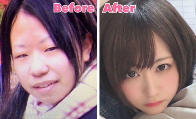 noteにupしたのでTwitterにも載せます。私の整形前と整形後の写真です🌸