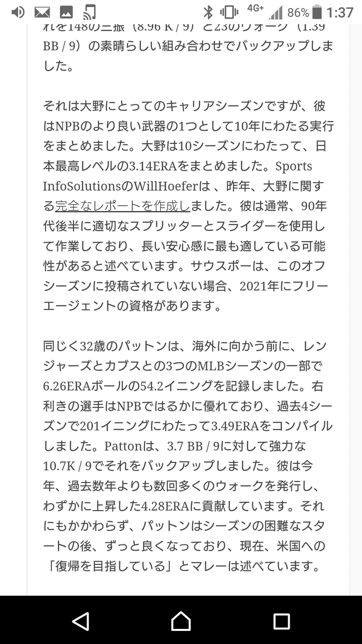 ・ただ中日大野が来年MLBにくるには球団が許可しないとダメなので実現しないだろう