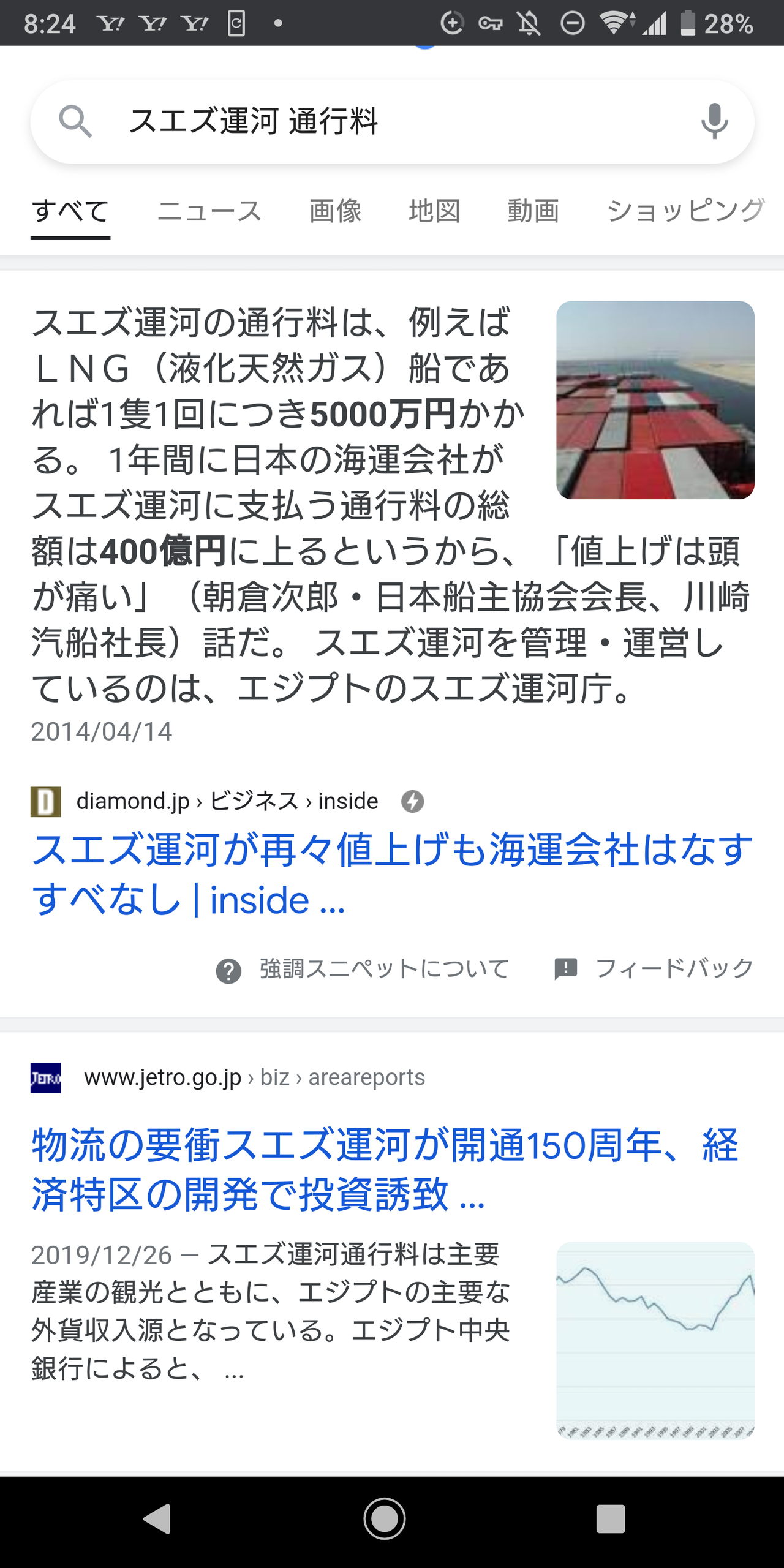 ワイの会社ヨーロッパから輸入してるから物流会社の人に聞いたんやけど南アフリカから回ってくるルートより運河の通行料のが安いんだと