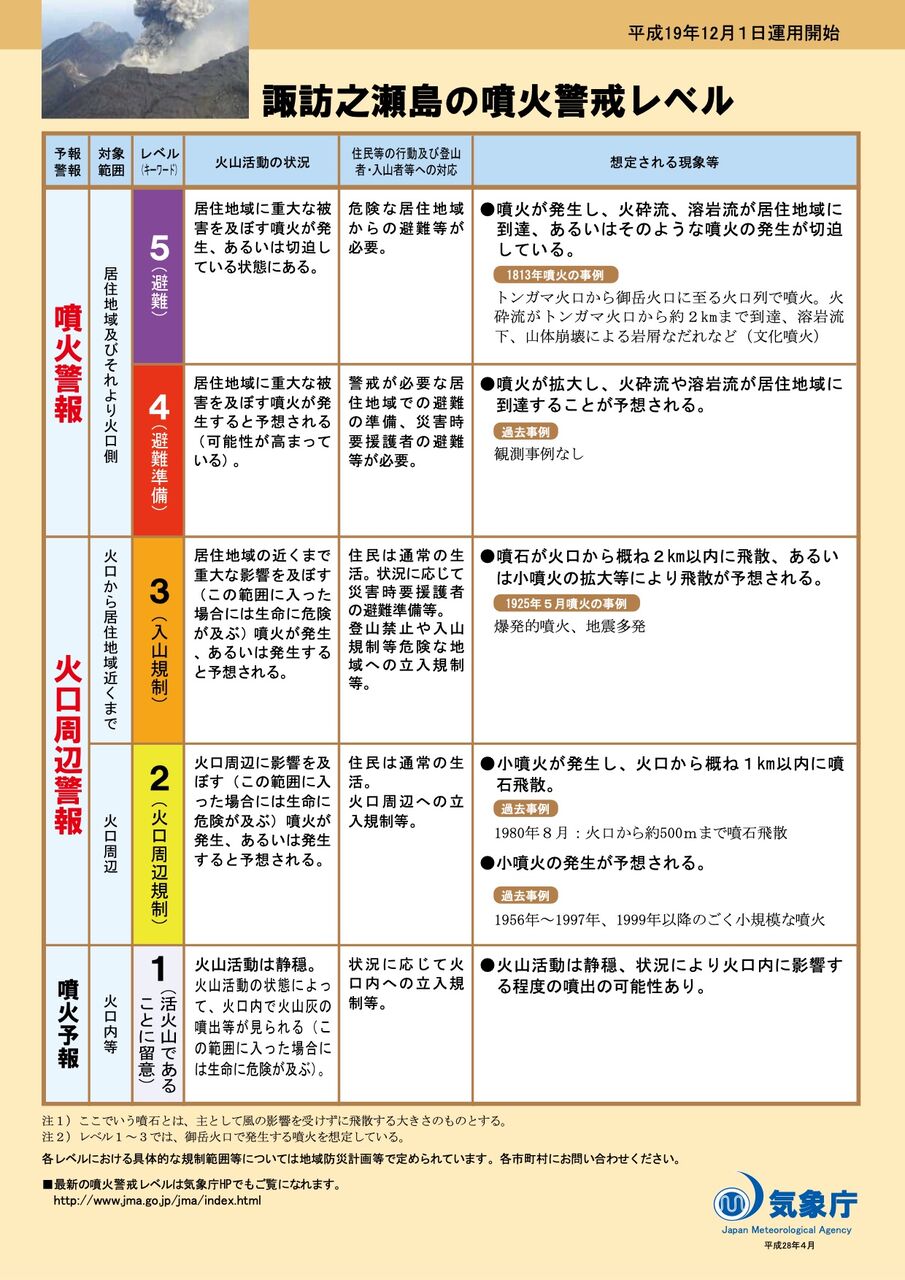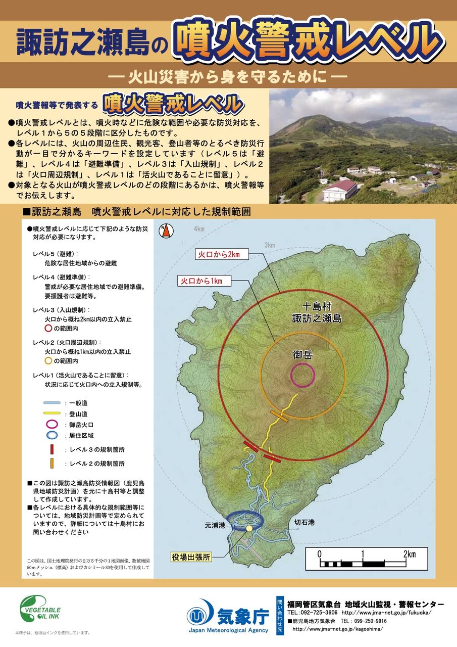 気象台は「噴火警報」を発表し、諏訪之瀬島の噴火警戒レベルをレベル3の「入山規制」に引き上げて、火口からおおむね2キロの範囲で大きな噴石に警戒するよう呼びかけています
