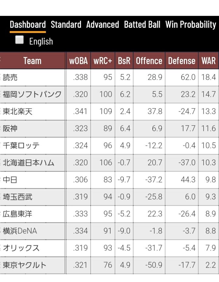 神宮プラスクソ守備でどんだけ過小評価されてるのか分からんレベルだわ
