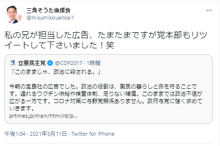 バリバリ政治が関与してて草 一般人ぶらんと立憲民主って載せれば良かったやんね