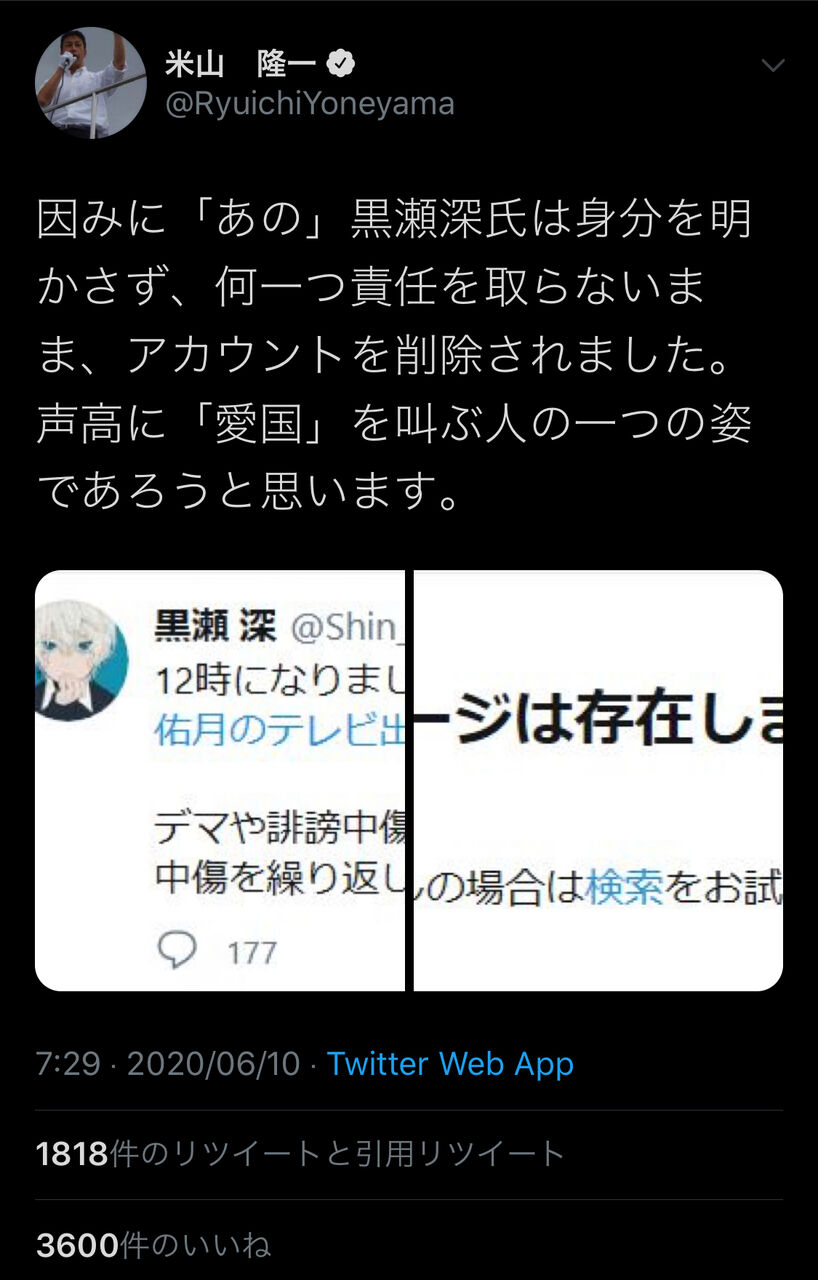 🔵@Ryuichi Yoneyama : いつも思うのですが、私は特段侮辱されていませんので、勝手に「日本」とか「日本人」とか名乗るのは心底止めて頂きたいと思います。
