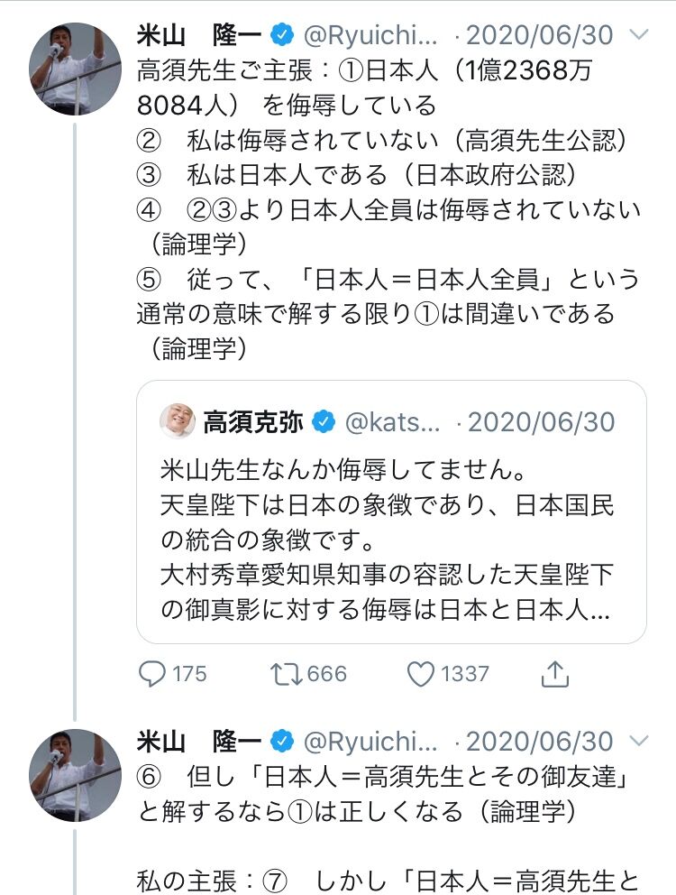 🔵@Ryuichi Yoneyama : 高須先生ご主張:①日本人(1億2368万8084人) を侮辱している