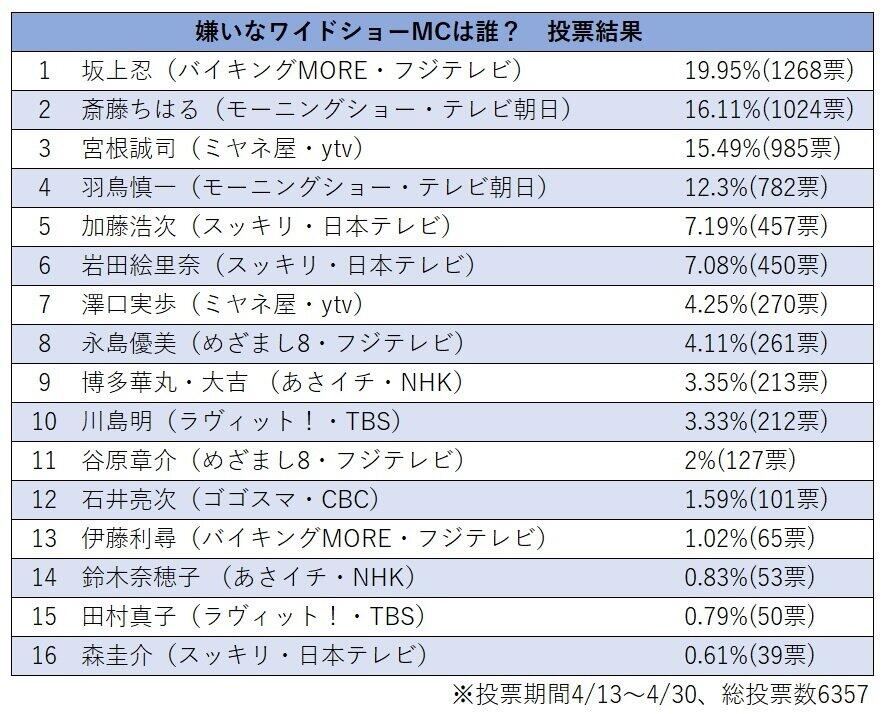 嫌いなワイドショー司会者は誰? 読者投票の結果、ダントツ1位はフジテレビの…
