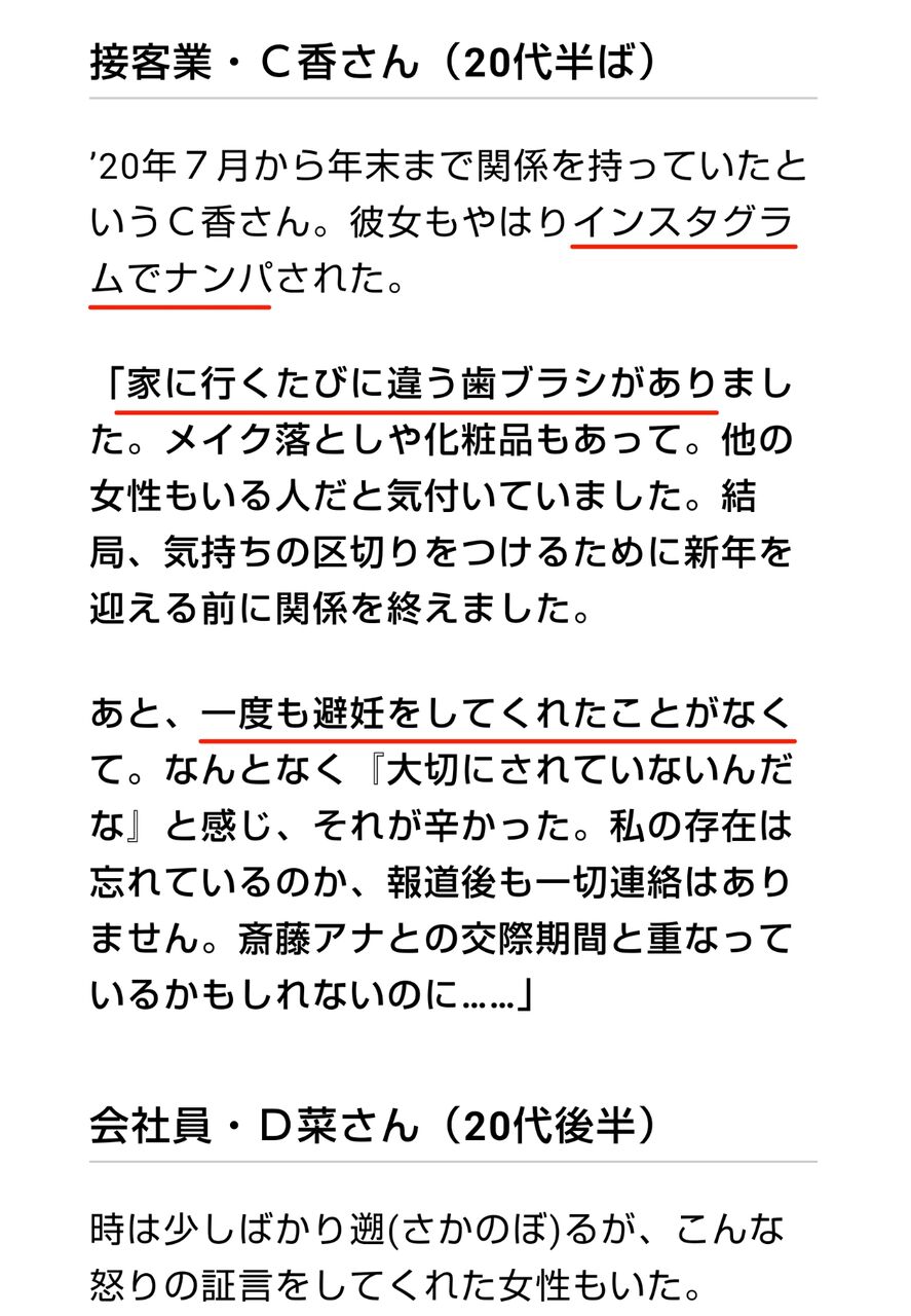 報道後、私も『フライデーがハッカー雇って君を狙うかもしれない。だからLINEの履歴を消してくれないか』と言われました。謝罪はもちろん、斎藤アナとの関係についても何も説明はありませんでした」