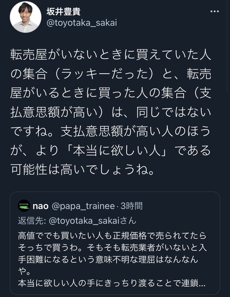 転売屋から現行品を高く買ったことあるかなって考えたけど一度も無いな