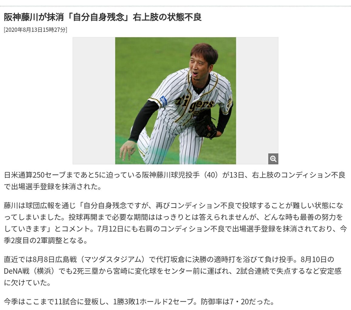 阪神はシーズン捨ててでも藤川の250sにこだわれよ