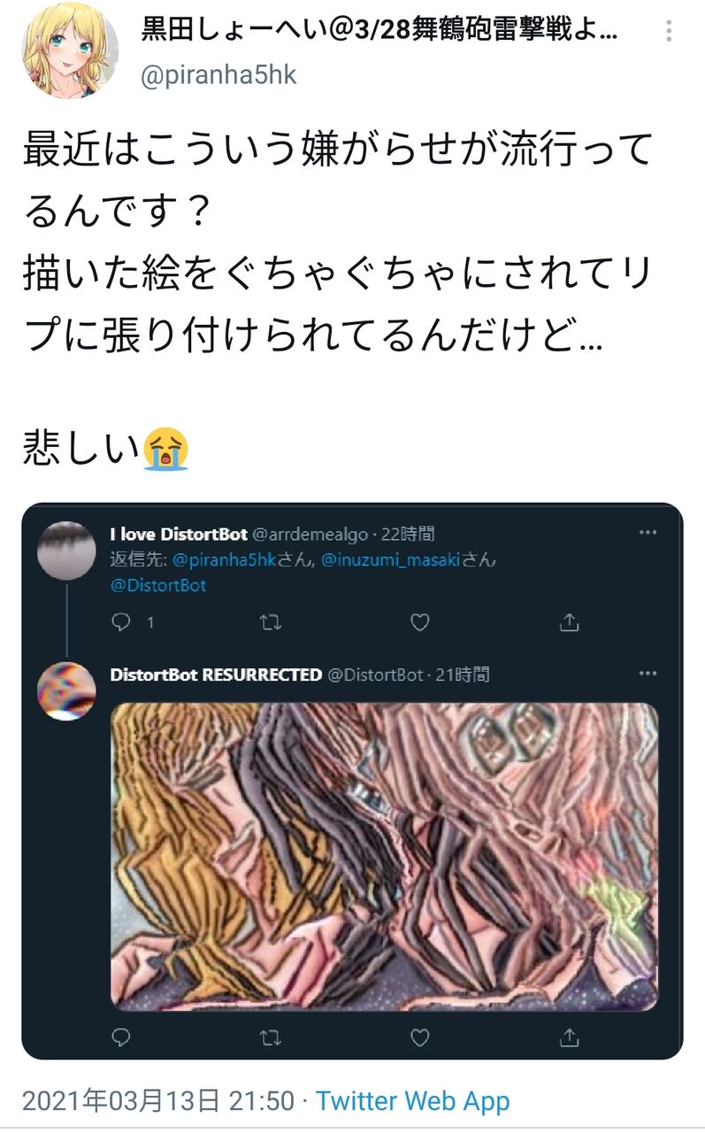ディストートボットなんて名前やし名前の通り画像を拗じるボットなんやろ