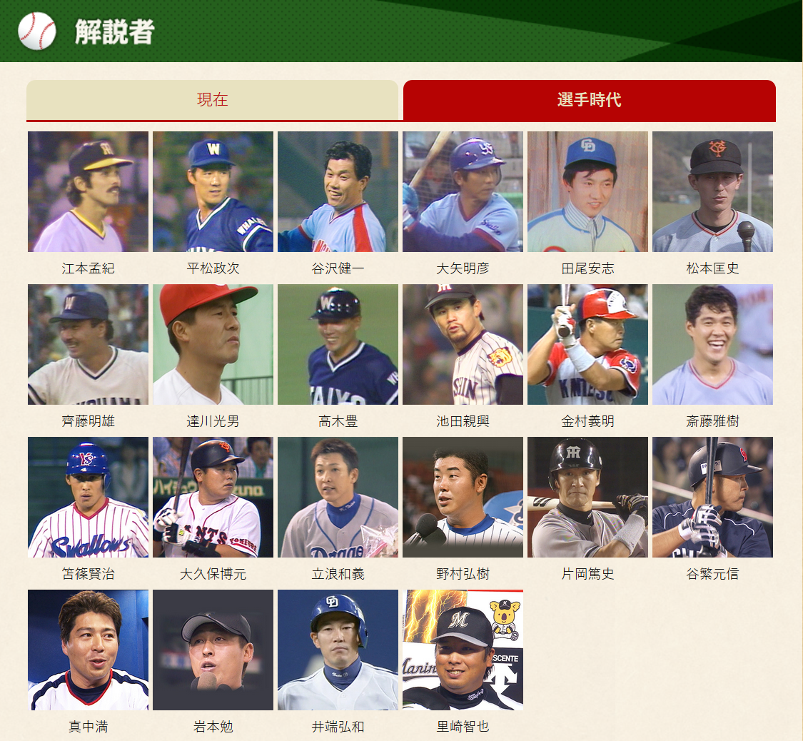 田尾、平松、片岡、里崎、井端、谷繁、デーブ
