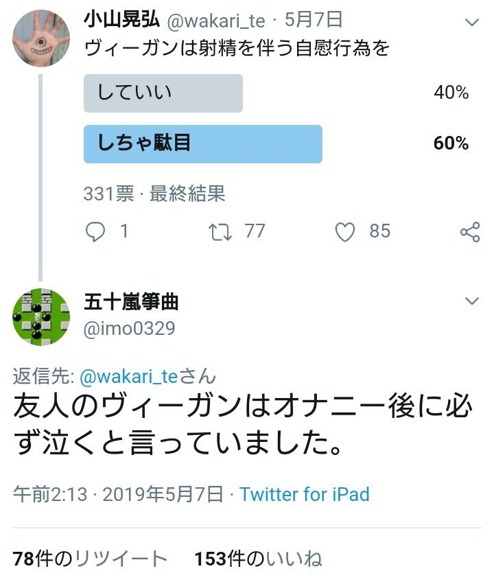 ヴィーガンは無罪とか思ってるならちゃんちゃらおかしいわ