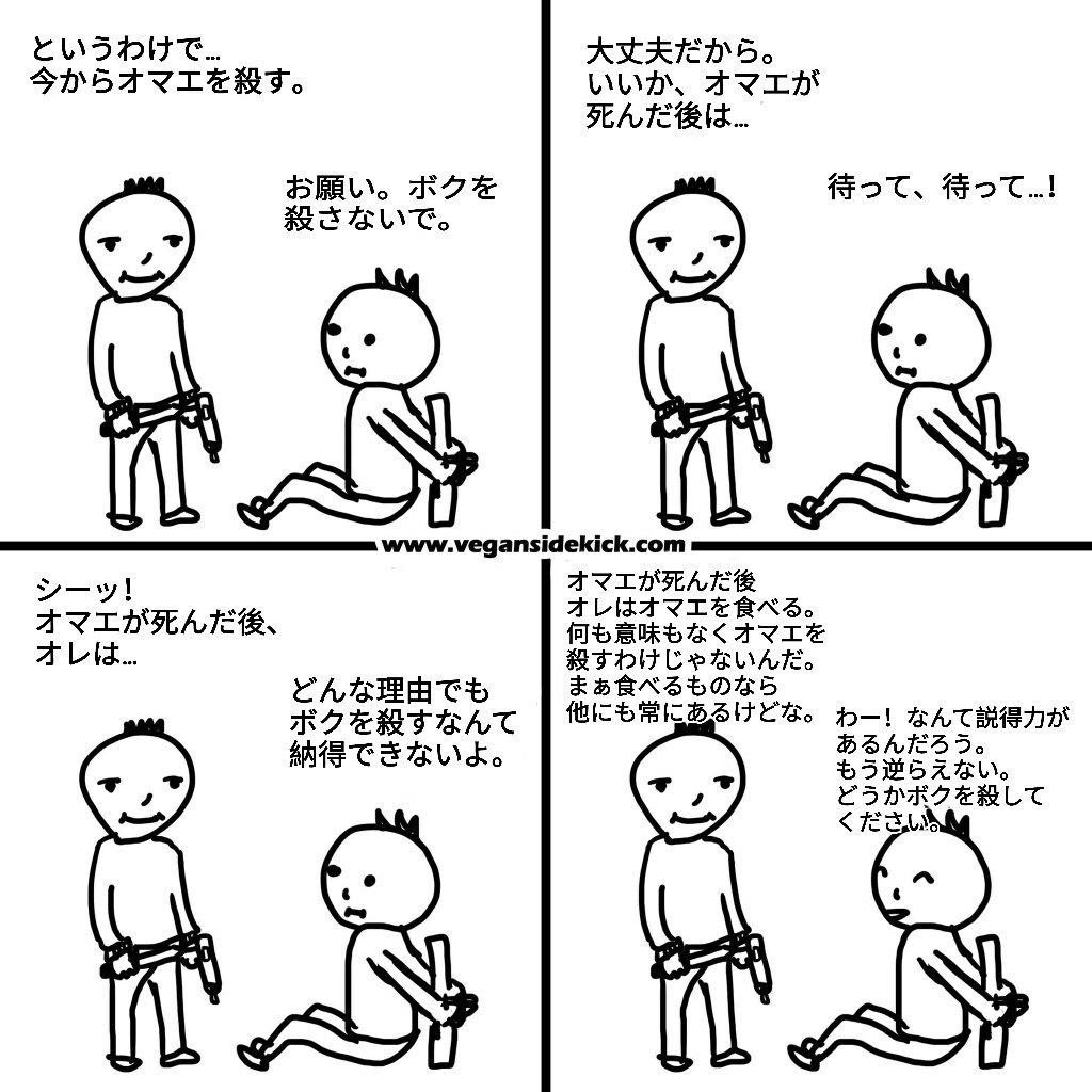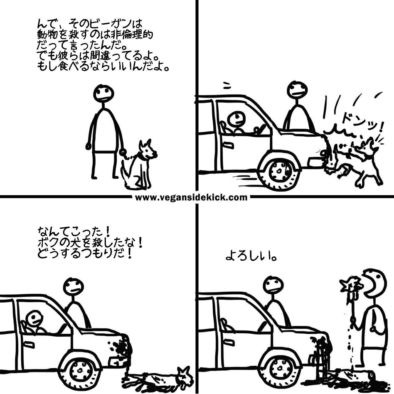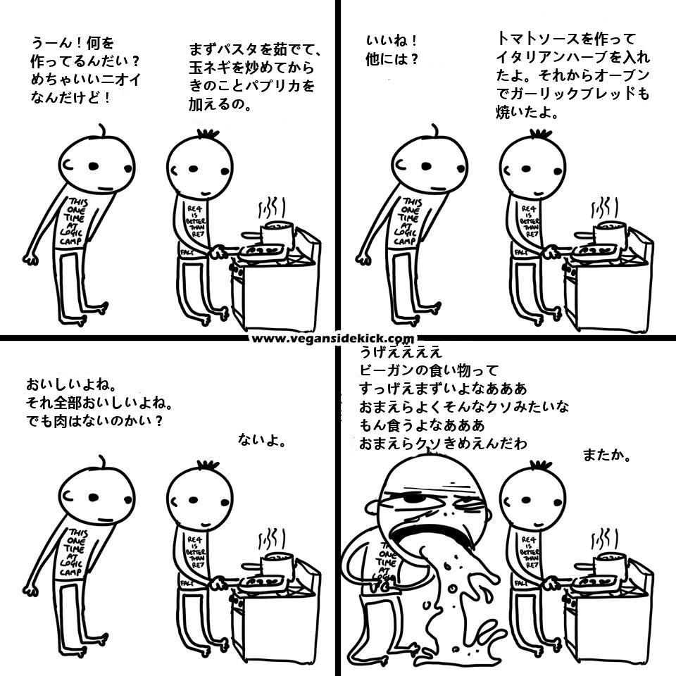これ反ヴィーガンはこんくらい頭おかしいですよっていう海外風の皮肉なのに頭悪い日本人が褒めてるのほんと草w
