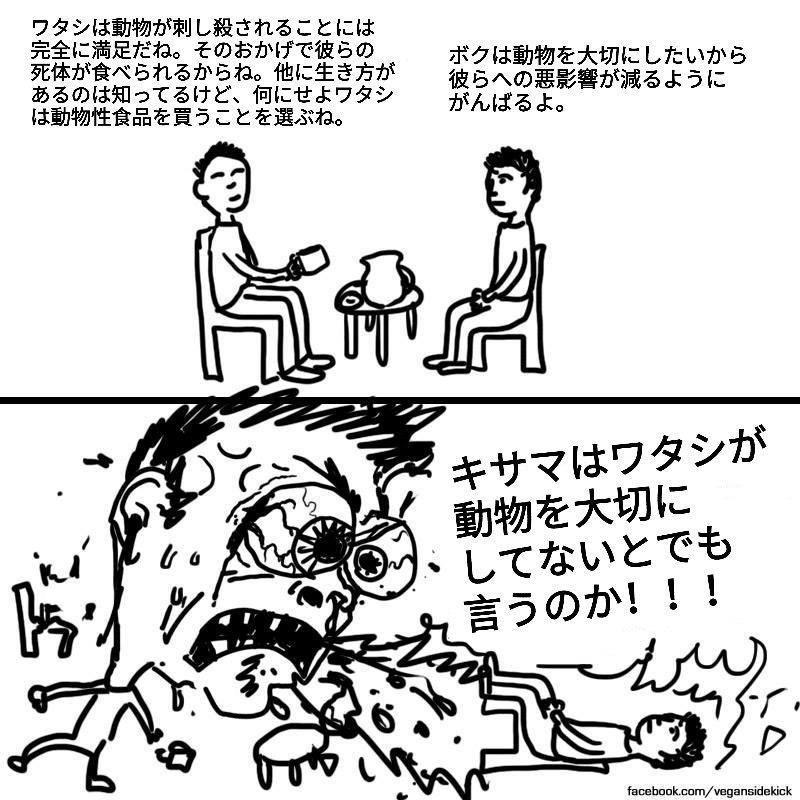 ビーガンの奴らの方がピリピリしてるイメージはあるな