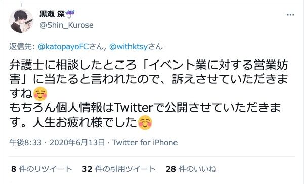 該当ツイートをRTなどで拡散した人も提訴する言ってるレベルやね