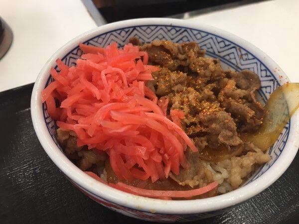 「牛丼に紅しょうが、のせる?」