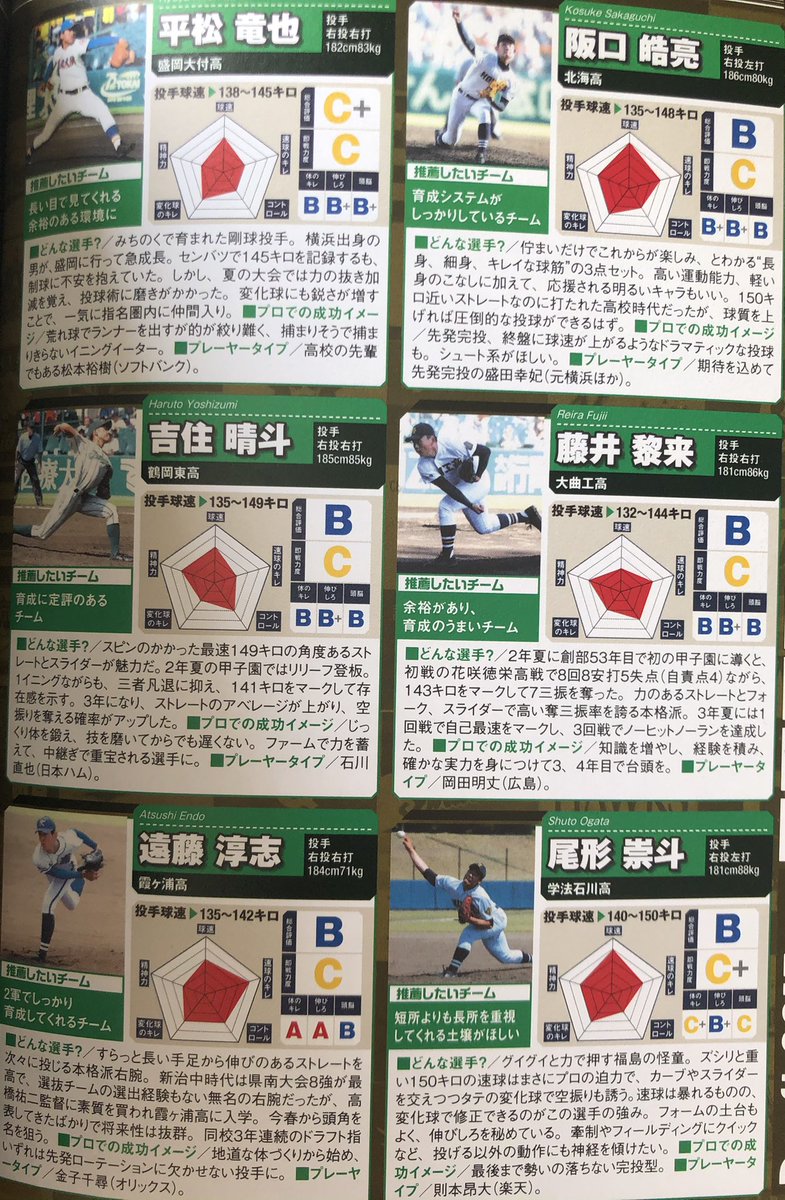 「最速151キロ投げっぷり良く打者を圧倒する投球が持ち味の素材型右腕。185センチの長身ながら優れた身体能力を持ち高いポテンシャルが魅力。スピンが利いたストレートは角度があり投手としての資質が非常に高い選手」
