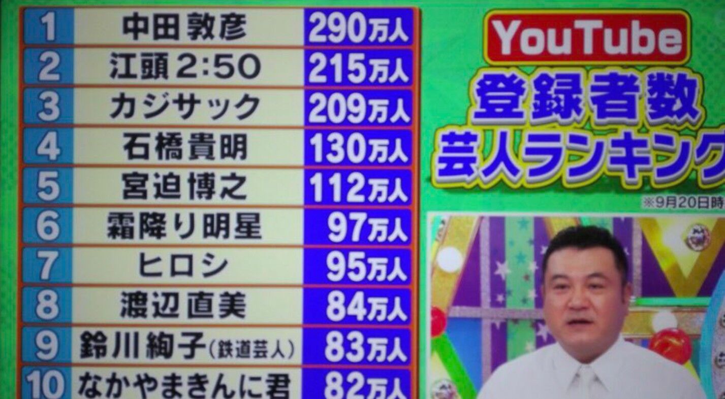 中田が300万人超の芸能人ナンバーワンYouTuberという事実