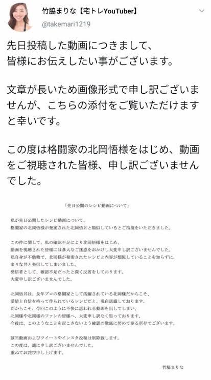 料理YouTuberやらかし多いよな竹脇まりなもこんなにひどいパクリをするし