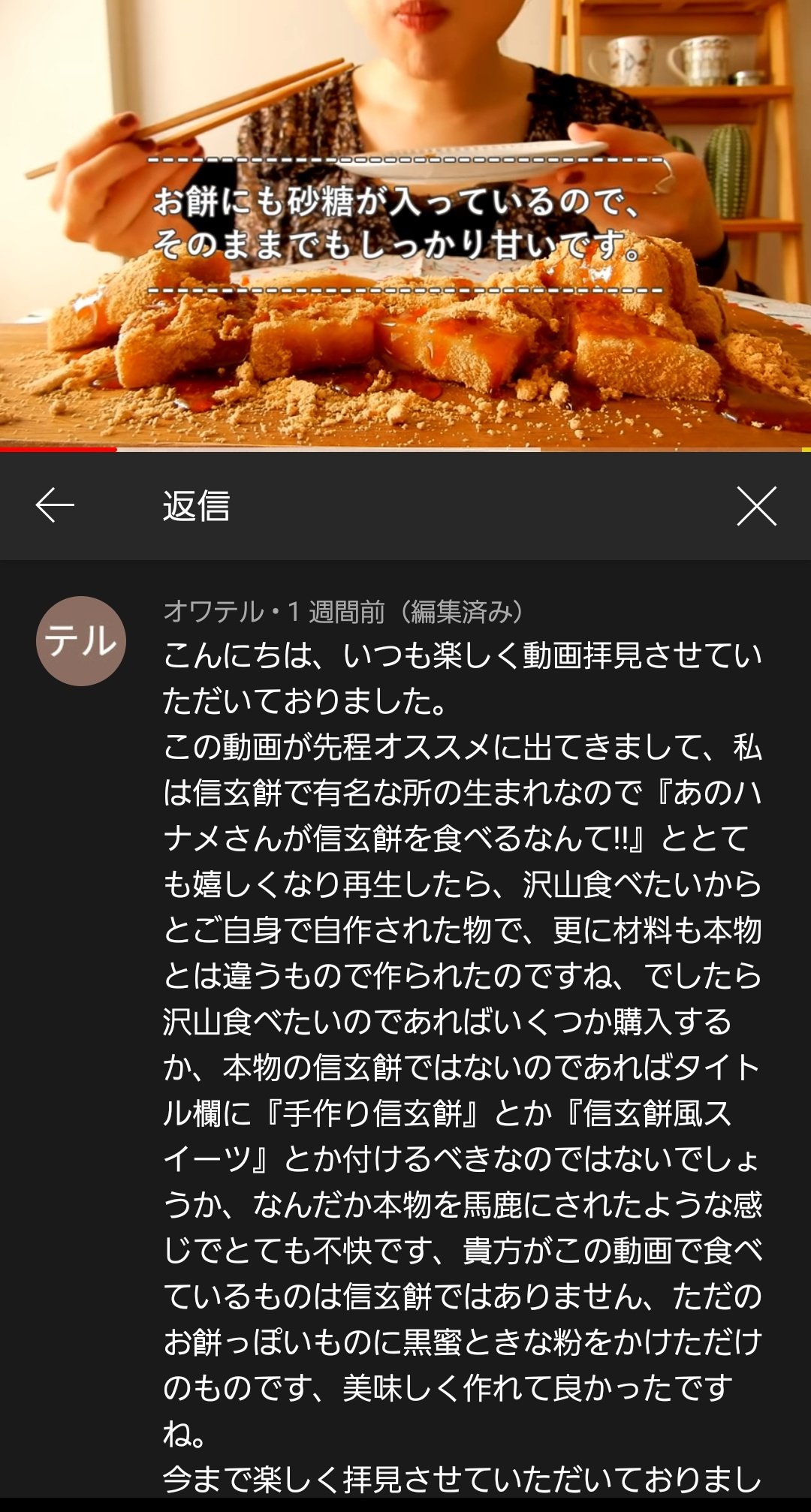 信玄餅の公開日が一年前で今日この動画が出るってまさかこの件で一年以上粘着されてたんか?