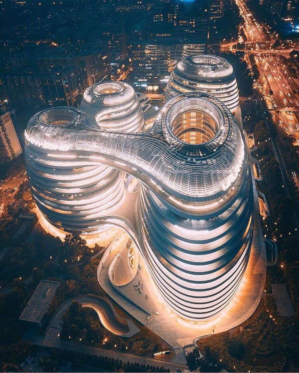 建築家のマイケルザッハが生み出した螺旋状のうねりを取り入れた様式